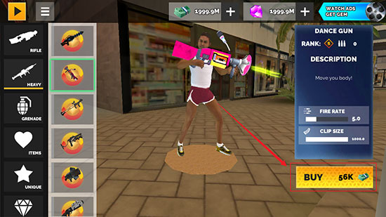 4、挑選你需要的武器,點擊【BUY】購買即可,由于是破解版,所以無需擔心購買問題;