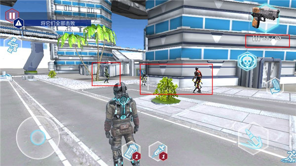 3、玩家只需要瞄準敵人即可開槍射擊,玩家需要將街道上的所有敵人全部切拜開采可以取得游戲的勝利。
