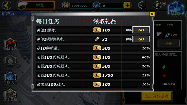 7、玩家還可以完成每日任務來領悟各種游戲獎勵,用來升級自己的裝備。