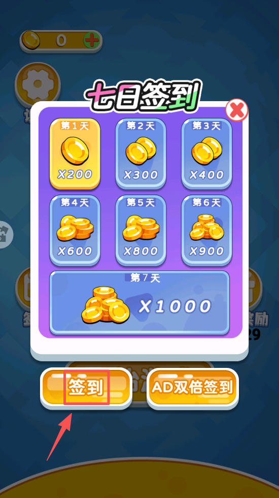 2、點(diǎn)擊“簽到”領(lǐng)取每日獎勵,連續(xù)七天有更多金幣可拿。