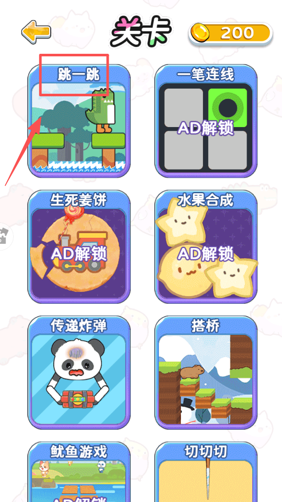3、選擇“跳一跳”關(guān)卡,點(diǎn)擊進(jìn)入游戲,體驗(yàn)不同的游戲模式。