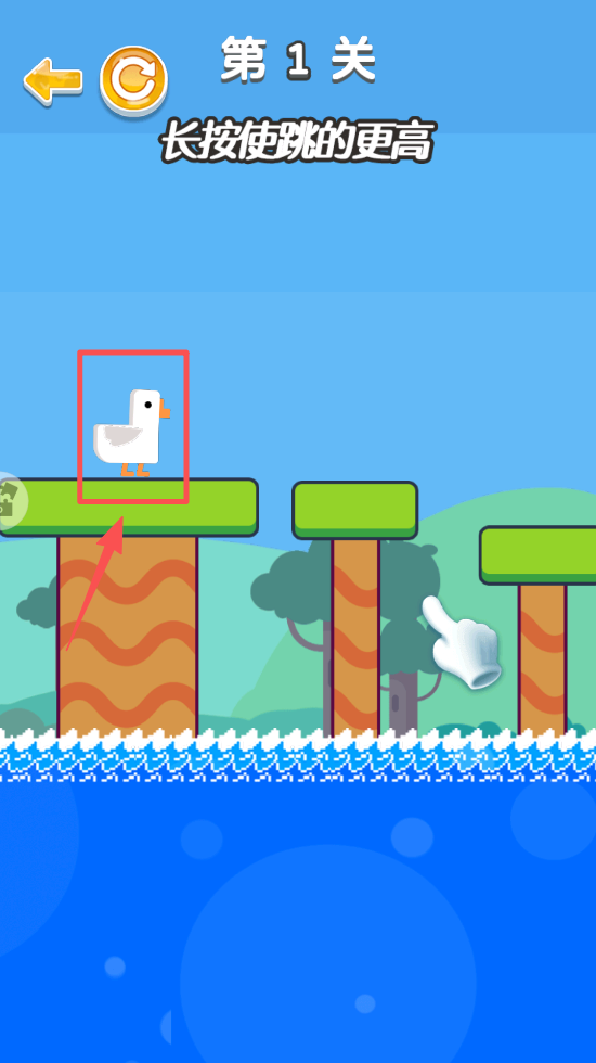 4、長按屏幕使角色跳得更高,避開障礙,成功通過第一關(guān)。