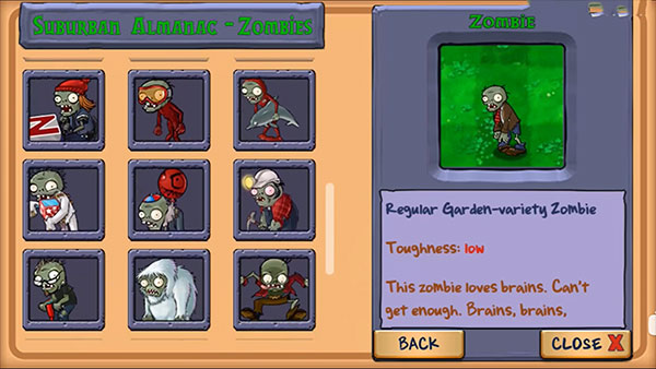 4、還有僵尸的圖鑒,知己知彼百戰百勝,每一個僵尸都有自己的風格特色。
